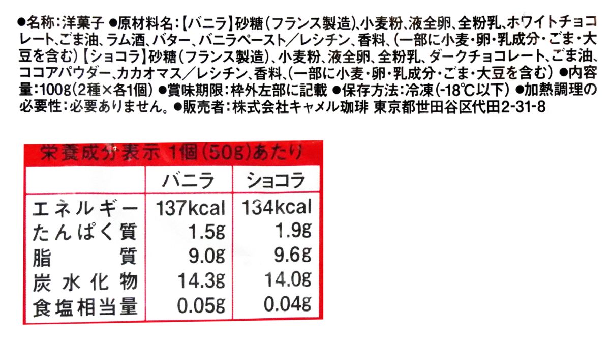 気になるカロリーは、ショコラが134kcal、バニラが137kcalです。