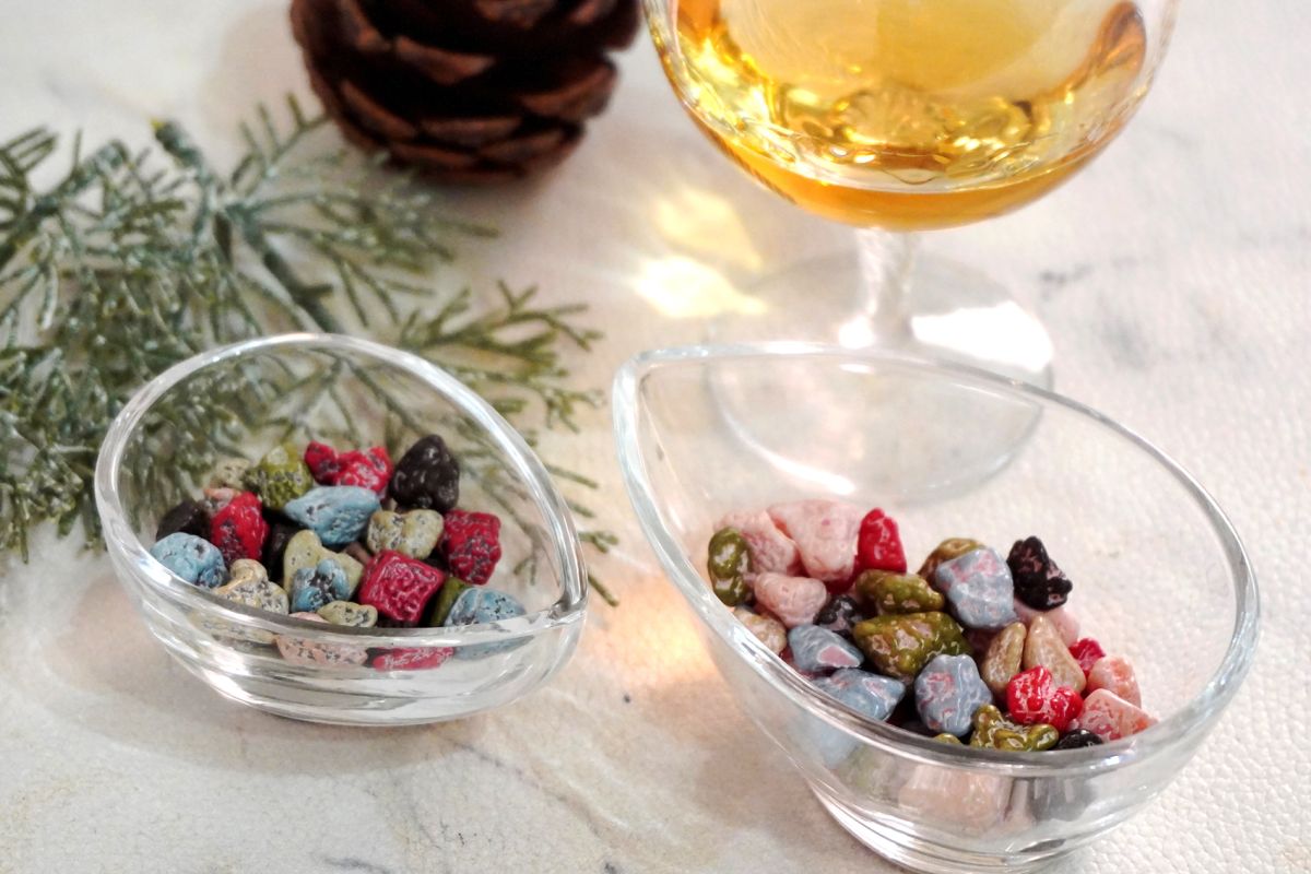 テトラから取り出し、きれいめの器に入れれば、お酒ともマッチする、大人の雰囲気になりました。子どもから大人まで、エイジレスで楽しめるチョコレートです。