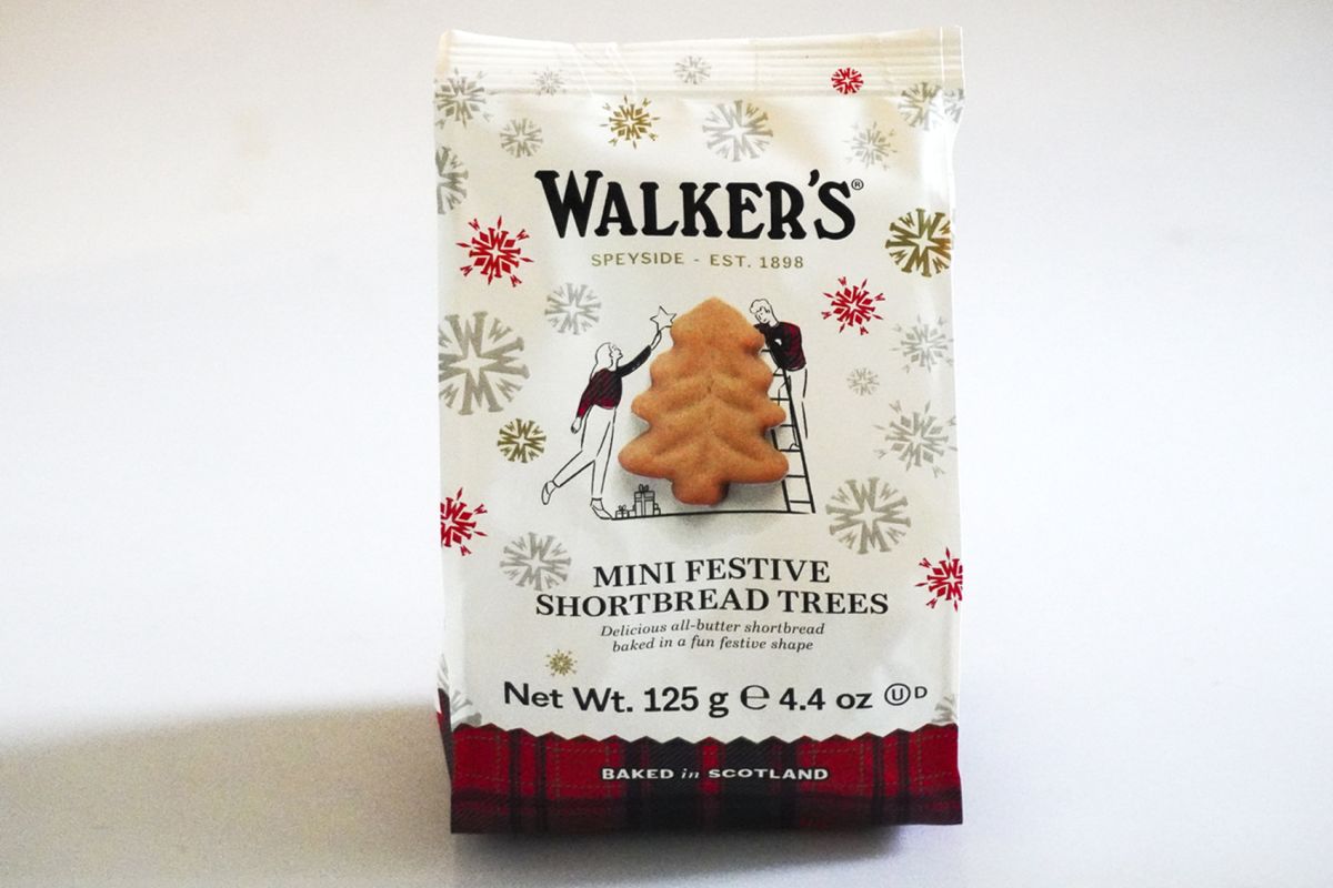 缶入り、箱入りとさまざまなショートブレッドが展開されていますが、今回ご紹介するのは、軽量な紙袋に入ったタイプで、価格がお手ごろ。クリスマス限定版で、ツリーの形をしたショートブレッドが入っています。