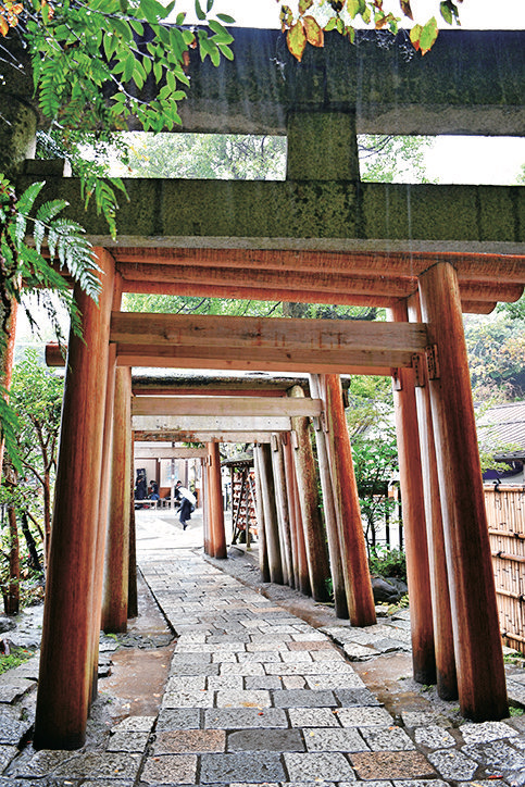 洗うとお金が増えるといわれる銭洗水で有名な「銭洗弁財天 宇賀福神社(ぜにあらいべんざいてん うがふくじんじゃ)」は、鎌倉随一の金運ご利益スポット。巳年の文治元年(1185)巳の月・巳の日に、人頭蛇身の水神・宇賀福神が源頼朝の夢枕に立ち「この地に湧く水で神仏を供養すれば、天下泰平が訪れる」と告げ、そのお告げに従い、源頼朝が社を建てたのが起源とされています。