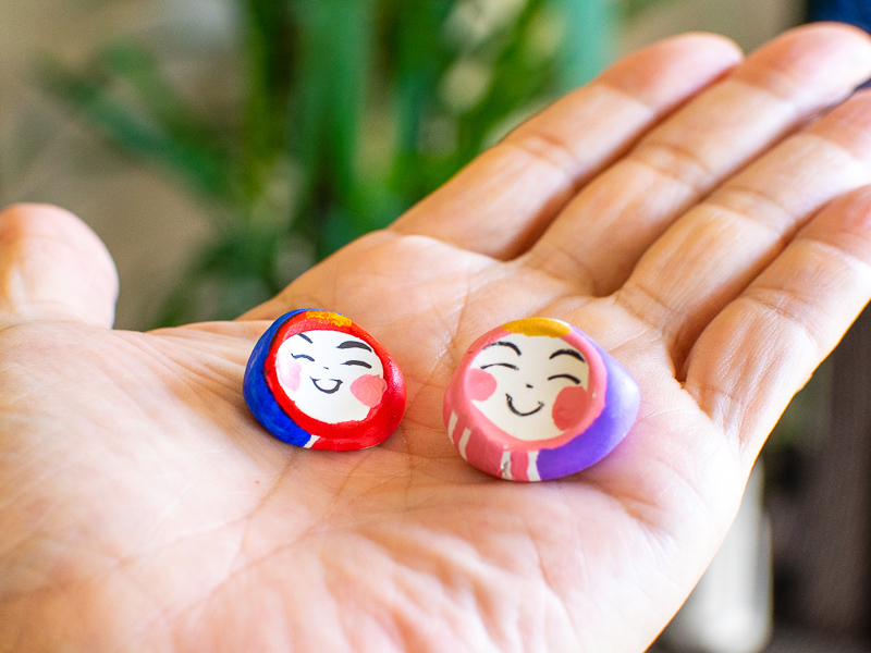 「愛」、「健」、「財」、「学」、「福」の5種類があり、一つ一つ手作りのため同じ顔のものはありません。表情や彩色も微妙に違うので、どれにしようか選ぶのがとっても楽しいですよ。