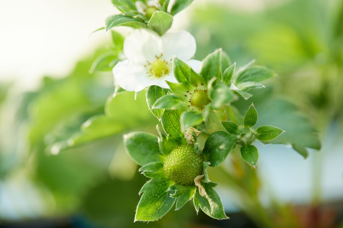 「東京いちごカフェ」の奥には、「府中いちご農園」の大きなイチゴのハウスが並び、1〜5月にはイチゴ狩り(大人3000円/人、子供1700円/人)が楽しめます。40分の時間制で、イチゴ食べ放題、練乳とチョコレートソース付け放題なので、思う存分イチゴを堪能できますね。11月の取材時はまだ白い花と小さな実ばかりでしたが、1カ月ほどで甘くておいしい真っ赤なイチゴになるそうです。