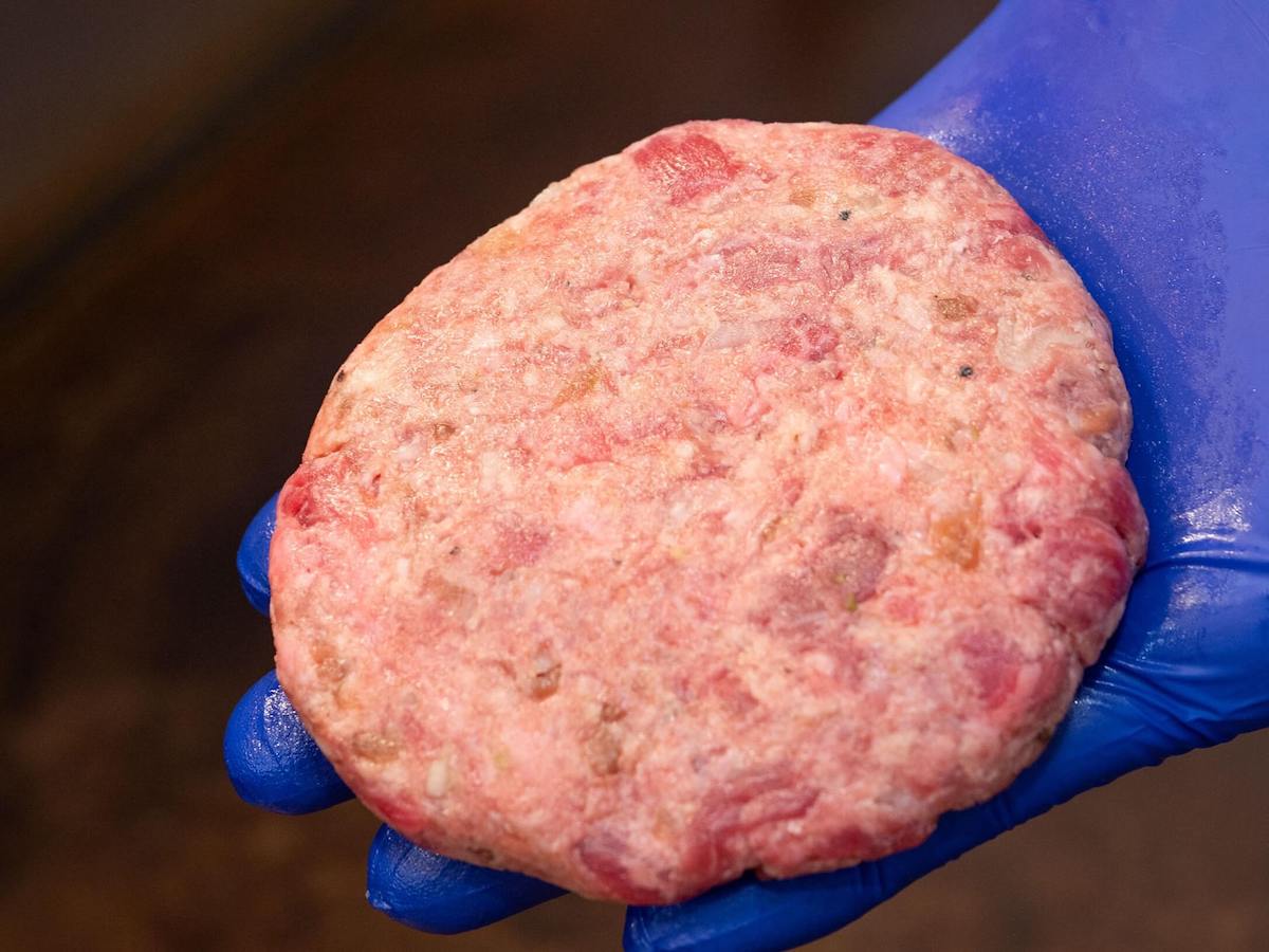 使用しているのは、アメリカの自社牧場で育てたブラックアンガス牛。そのうま味豊かなブラックアンガス牛の赤身肉100%で作られたハンバーグがコチラです!熱々の鉄板で焼かれ、お肉の歯ごたえをダイレクトに体感できるようにと“粗びき”に仕上げているそう。