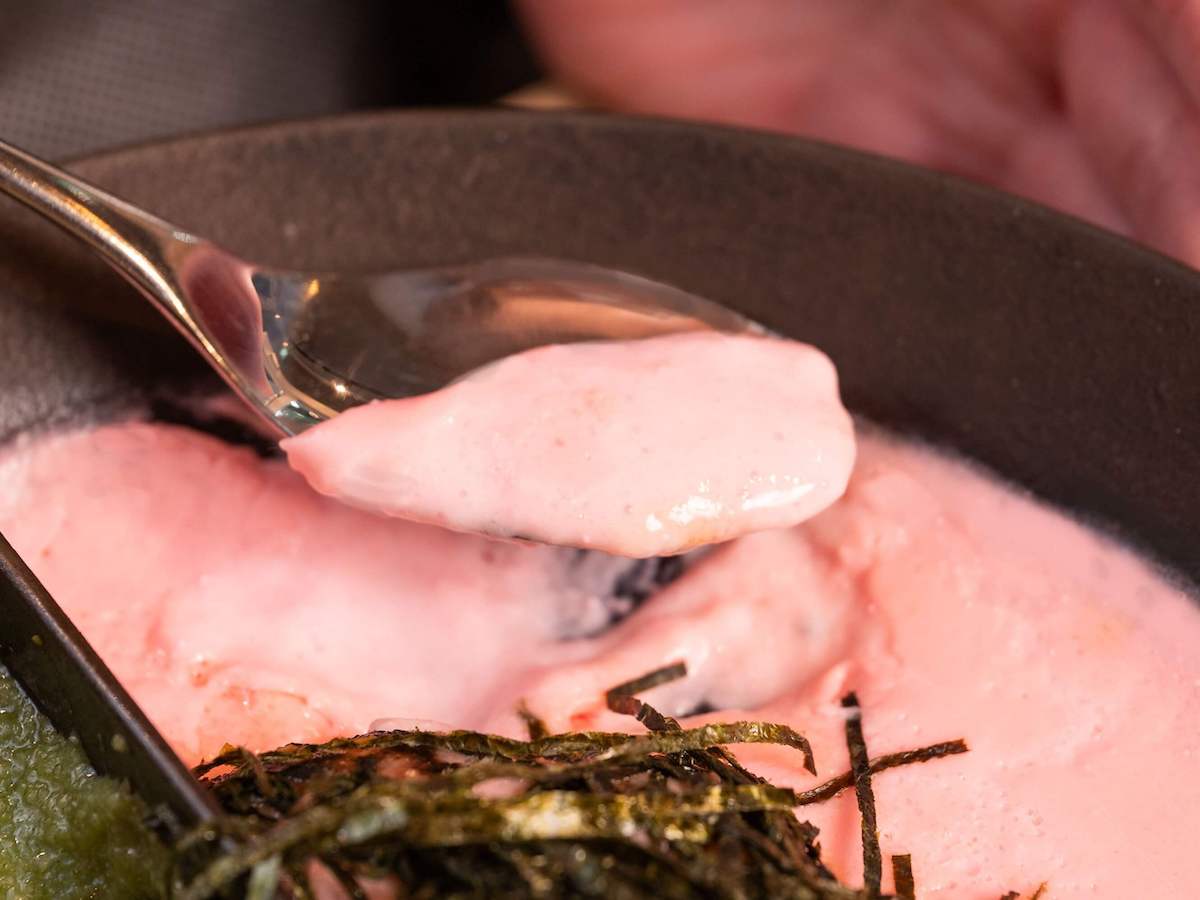 続いておすすめする組合わせは、「とろろわさび」と「めんたいクリーム」のソースです。フォトジェニックなだけでなく、そのおいしさも折り紙付き!