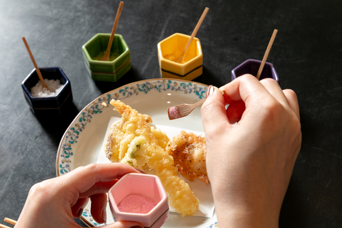 そして天婦羅はなんと、塩が5種類もあります。どの塩をかけるか考えるだけでもワクワク。