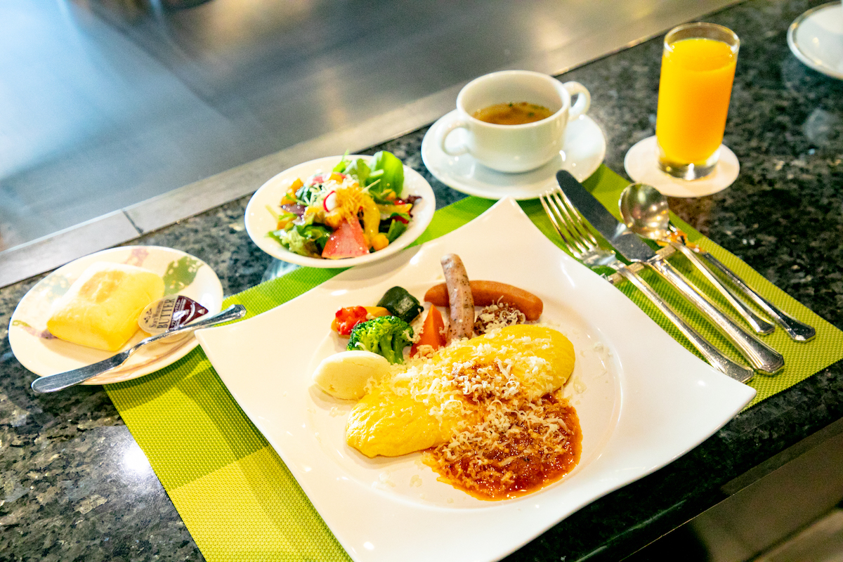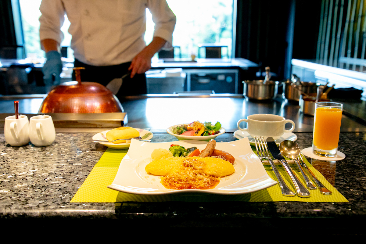 朝食はシェフが目の前で焼き上げるオムレツに感動