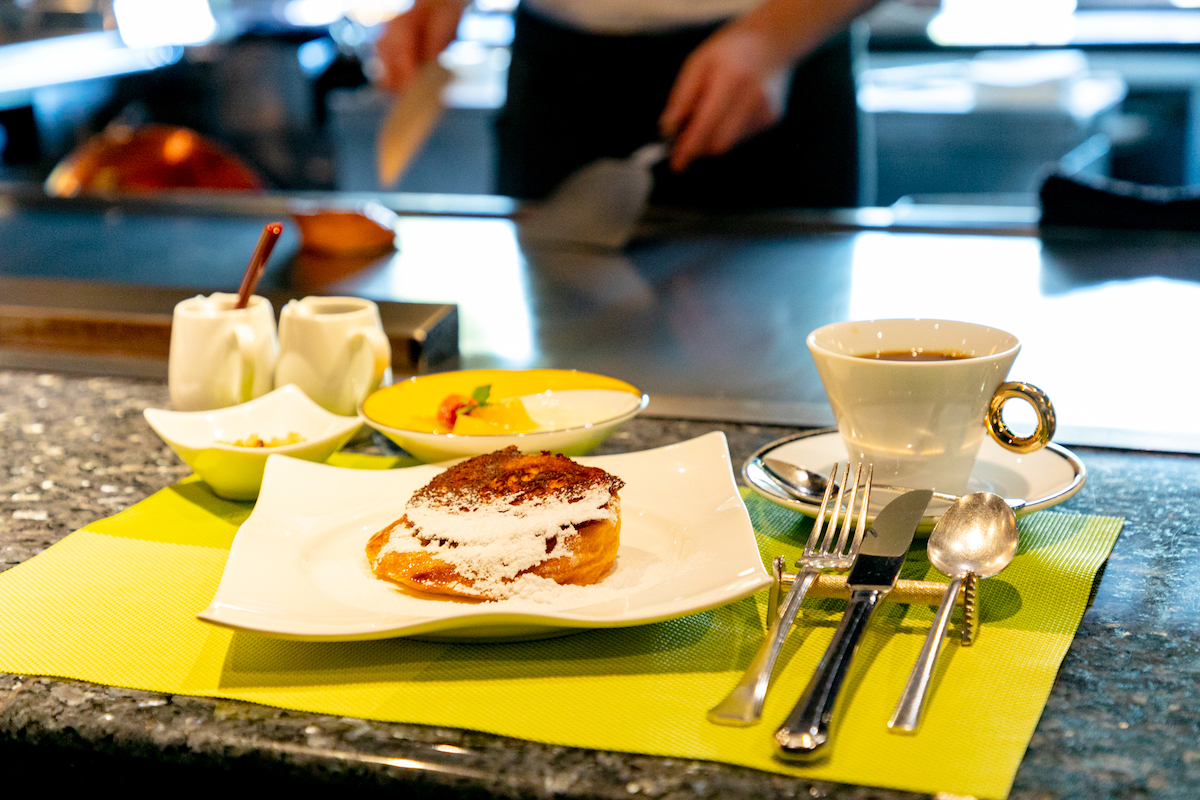 鉄板で焼き上げるデザートのフレンチトーストも、贅沢すぎる朝のひと時を演出してくれます。なかなか朝からシェフの作りたて朝食を食べられる機会はないので、非日常な気分を味わえました♪