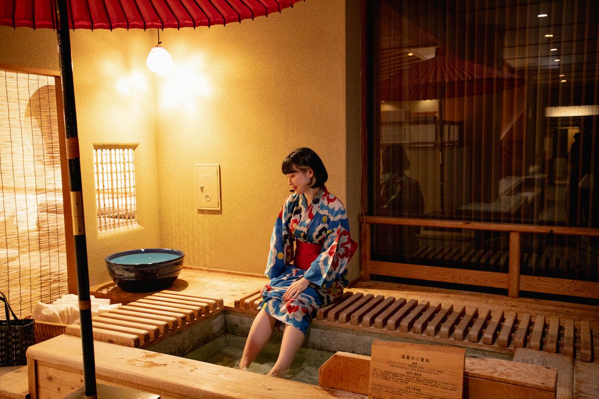 夜になると景色はあまり見えませんが、趣のある空間に。もちろん足をふくタオルも完備されているので、好きな時に入ってくださいね。