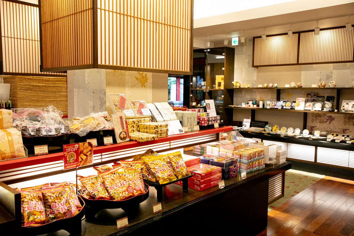 さまざまなおもてなしで大満足の「吉祥やまなか」。最後にエントランスのすぐそばにショップがあるので、ここでおみやげを買って帰るのもあり。8時から21時まで営業しています。