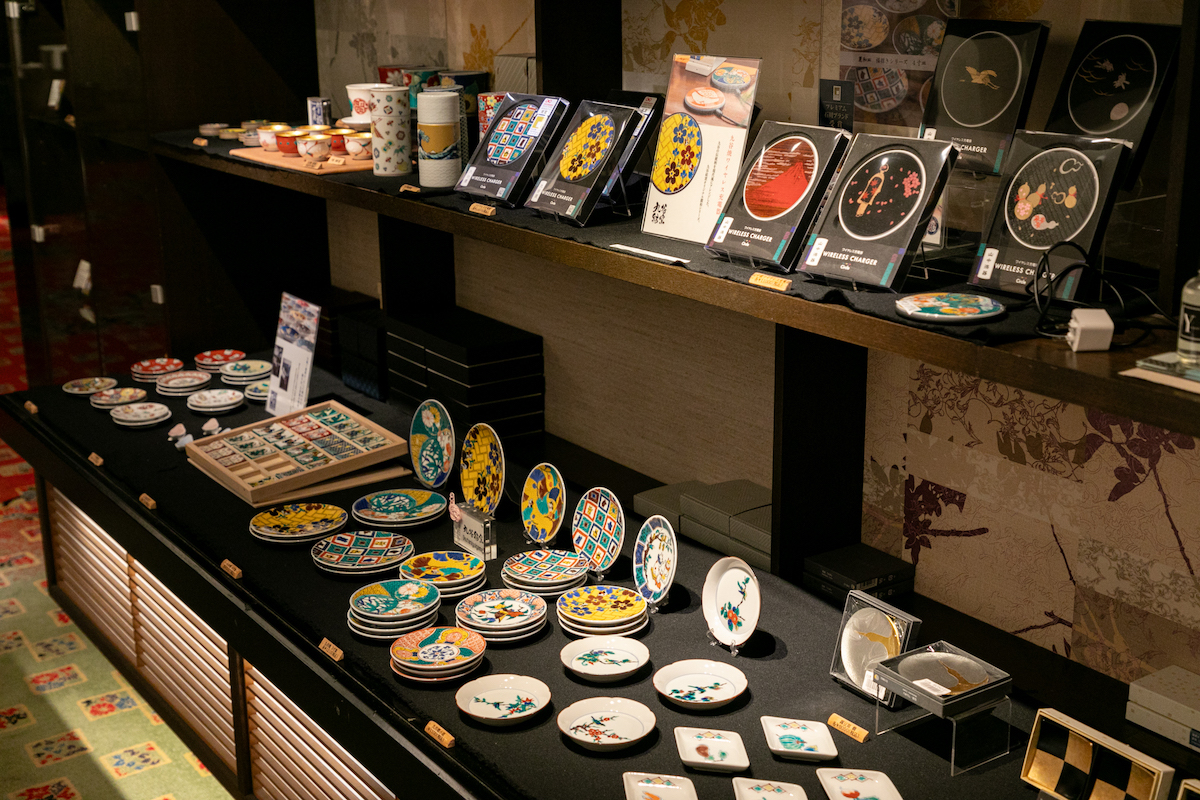 店内には九谷焼の豆皿など、石川らしい商品がずらりと並んでいます。
