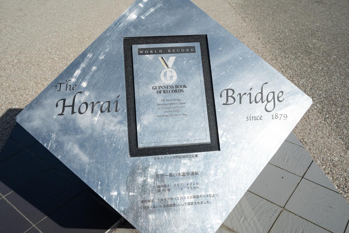 1997年には「世界一の長さを誇る木造歩道橋」として、ギネスに認定されました。認定の石碑が、橋番小屋の前に設置されています。