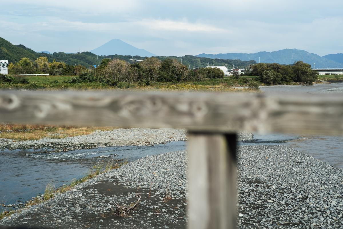 しばらく進むと、晴れていれば進行方向の左に富士山が見えてきます。橋の真ん中くらいまでが富士山の撮影ポイントです。