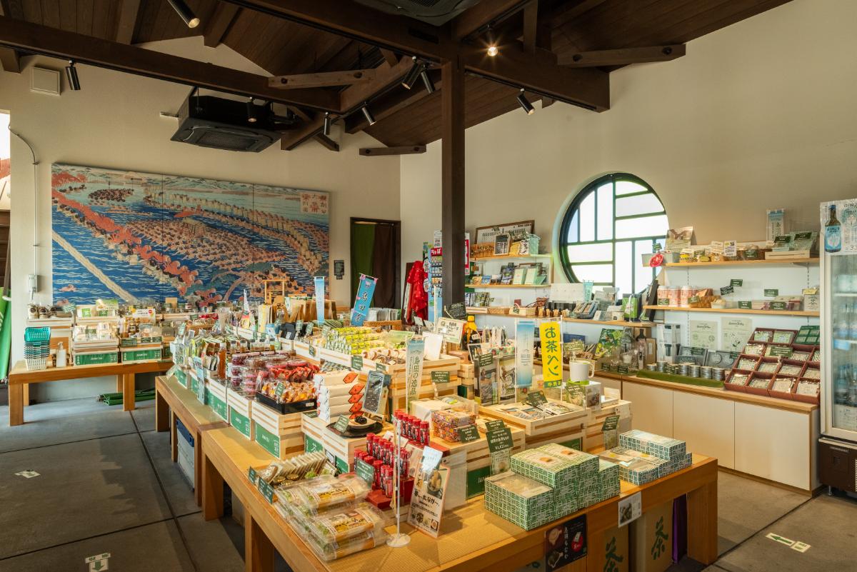 店内には島田市の名産品が勢揃い。お茶はもちろん、さまざまなお茶アイテムも売っているので、宝探し気分でお気に入りを見つけてみて。
