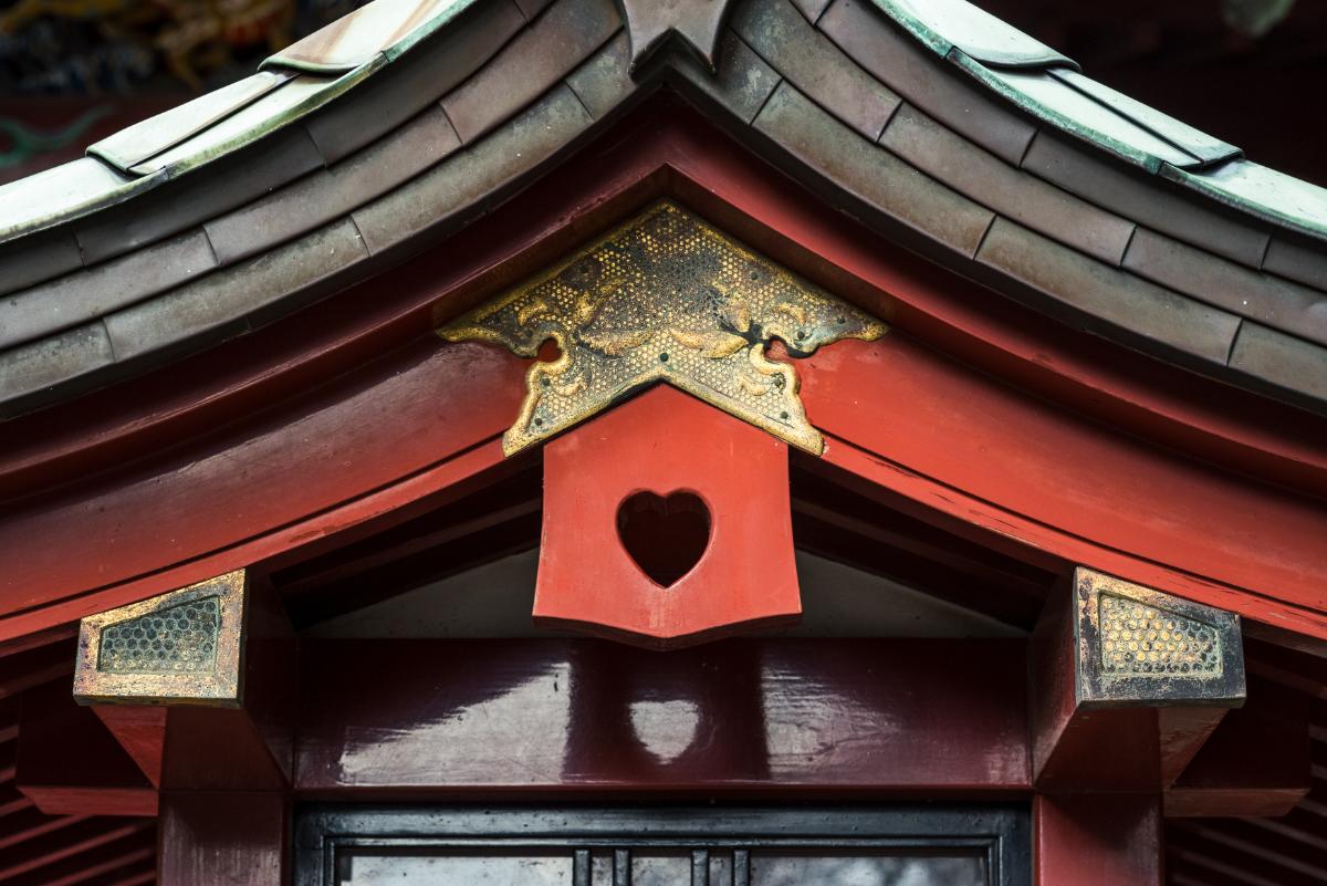 神社の建物には、魔除け・厄除け・火災除けを願った「猪目(いのめ)」とよばれる装飾があります。大小さまざまな大きさの猪目は、幸運の種。たくさん探してみてくださいね。