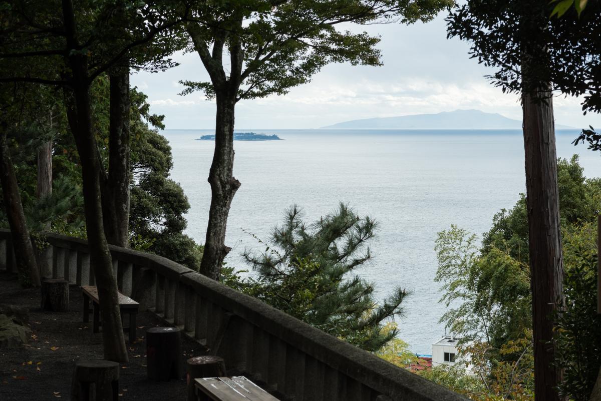 相模灘の絶景を見下ろす「伊豆山神社」。境内にはベンチも置かれ、清らかな空気のなかでゆっくりと時間を過ごすことができます。皆さんも熱海を訪れた際は、ぜひ伊豆山神社を訪れてみてはいかがでしょうか?