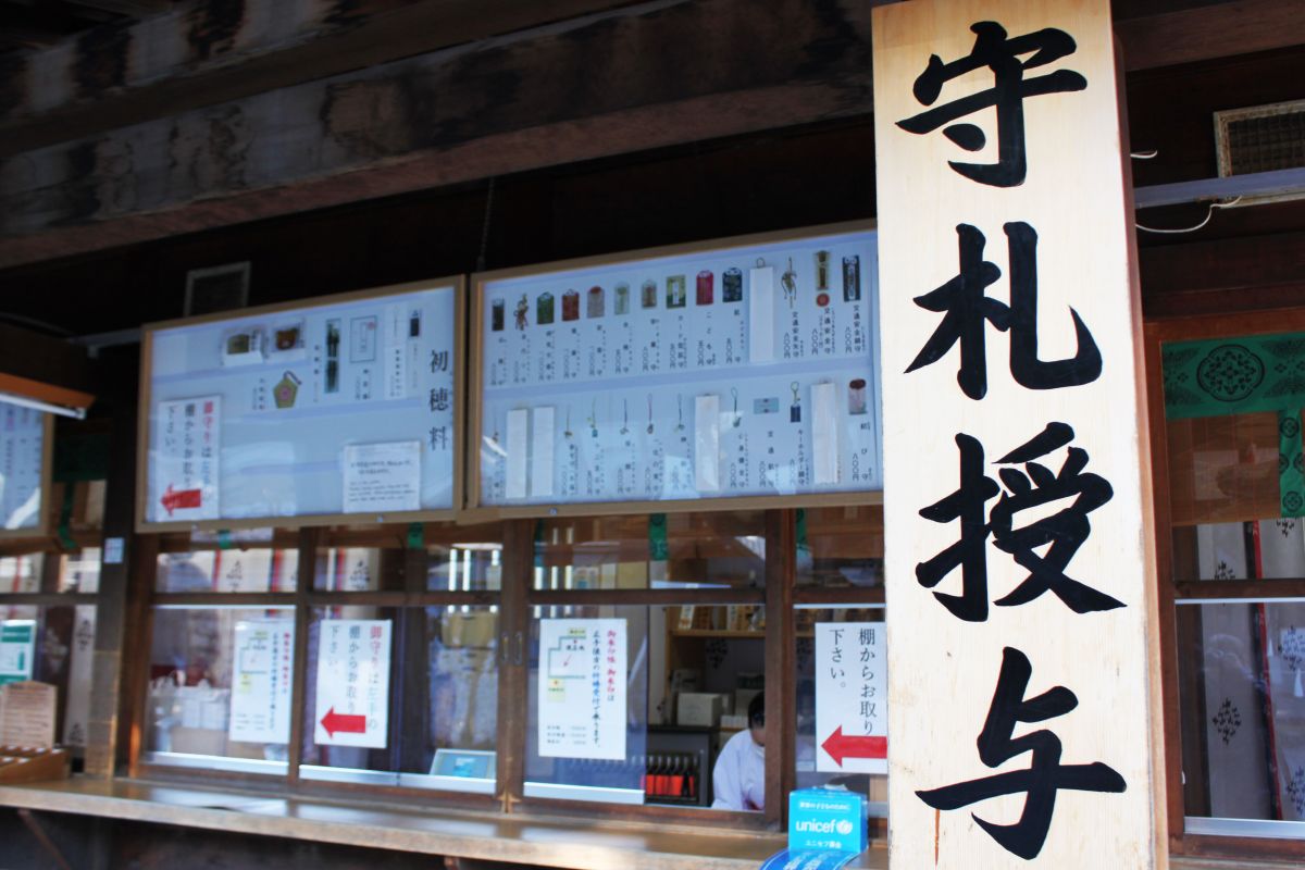 拝殿向かいの授与所ではさまざまな種類のおみくじや授与品を用意。神札のほか、健康や学業、交通安全、縁結びなどの願いに合わせたお守りも種類豊富に揃います。可愛らしいデザインの品も多く、自分用のほか旅のおみやげとしてもおすすめです。