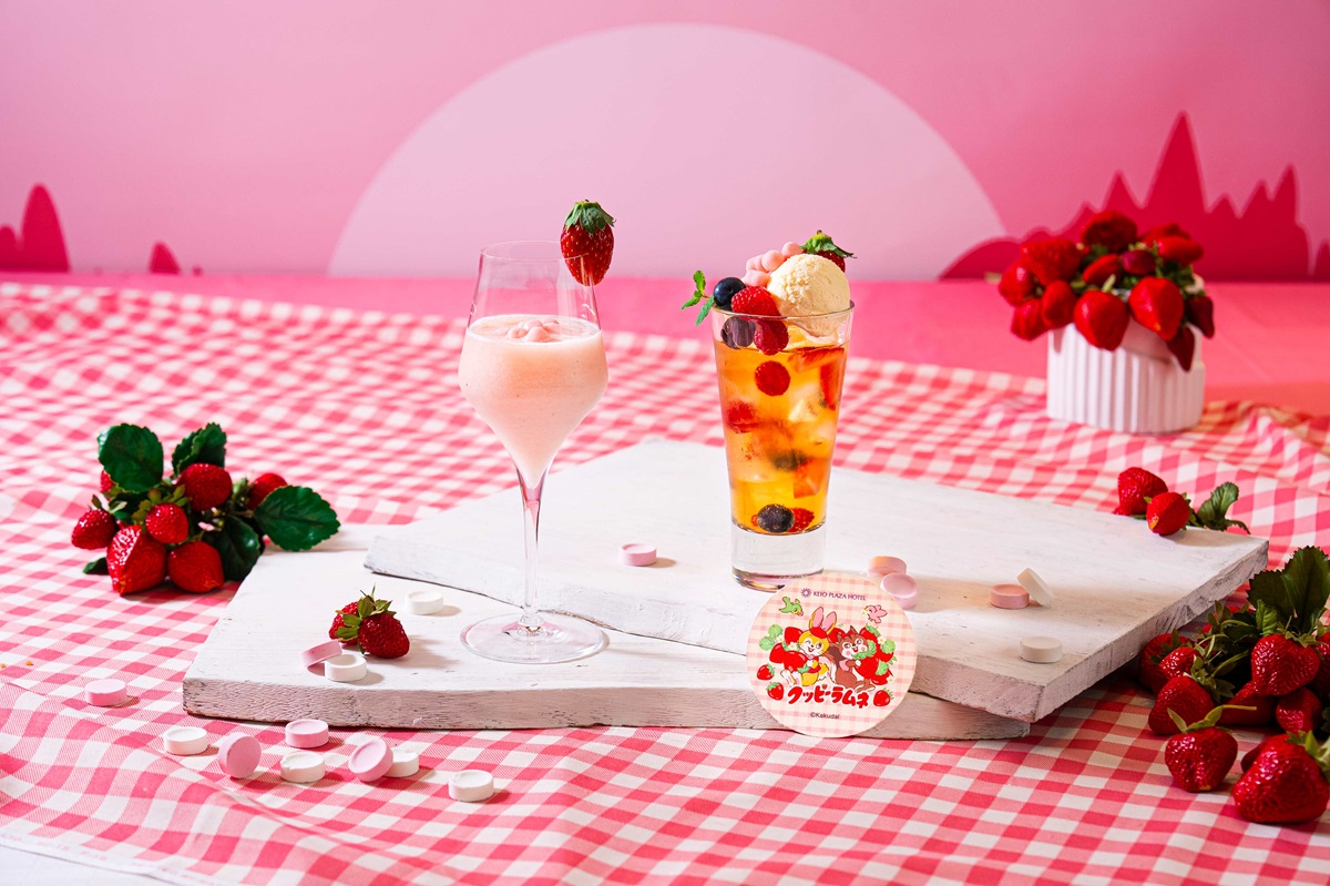 毎年「京王プラザホテル」で好評開催の、イチゴ尽くしのスイーツブッフェ。2024年は、子どもの頃に一度は味わったことのある「クッピーラムネ」が加わります。