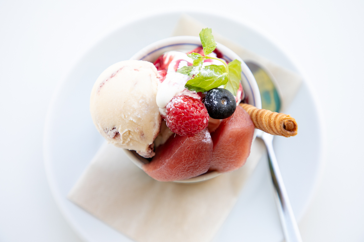 フュージョンランチを満喫した後に追加で単品のデザートはいかがですか?今回はデザートのなかから特にオススメの「もったいないパフェ」をいただきます。