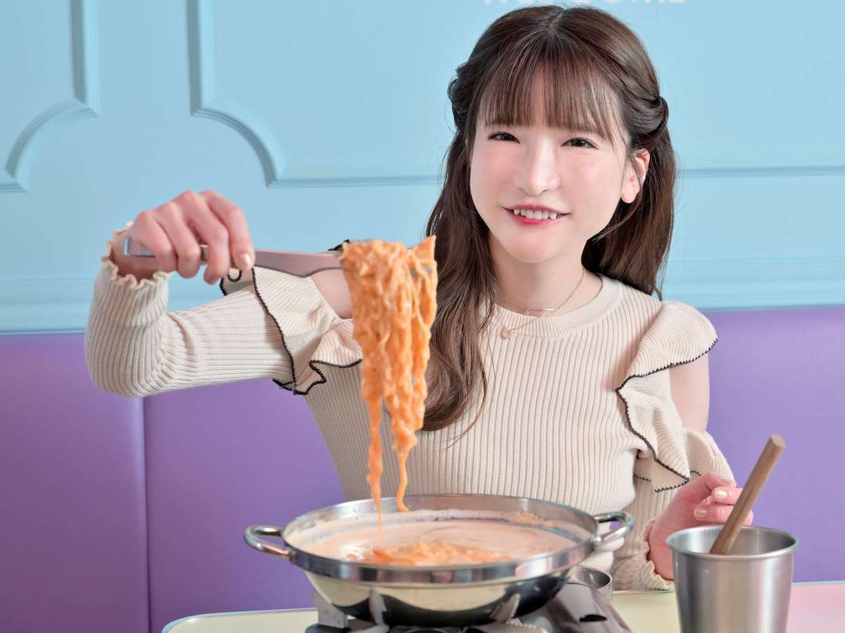 「韓国屋台ハンサム 渋谷店」の生クリームたっぷり「クリーミーチーズラッポッキ鍋」【大食いアイドルもえのあずきの絶品グルメ75】