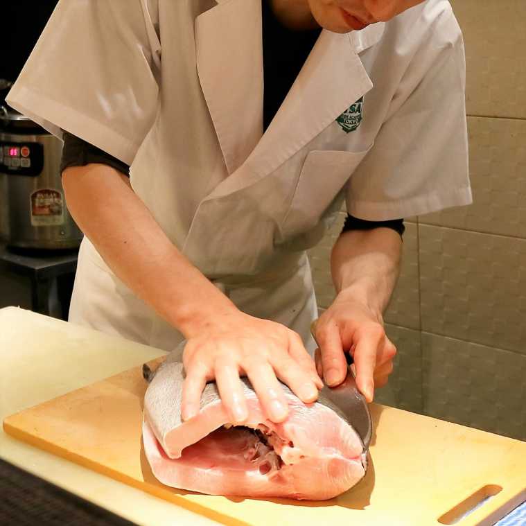 ネタのおいしさの秘密は、築地から届く新鮮な旬の魚介にありました! 職人さんのにぎりの技は、カウンター越しに見ることができますよ。