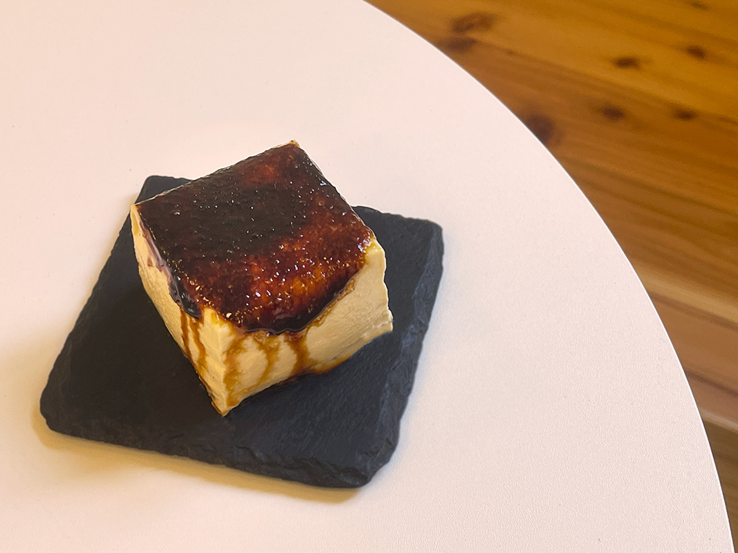 少し苦味のある香ばしいブリュレが、プリンの甘さを引き立てます。上がパリパリしている分、プリンのとろ〜り軟らかな食感をより感じられますよ。