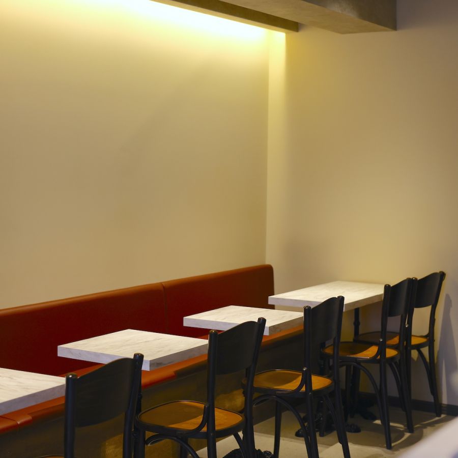 店内に配されたマーブル調の白いテーブルといい、通りに面したシックなカウンター席といい、とにかくかっこいいんだなー。