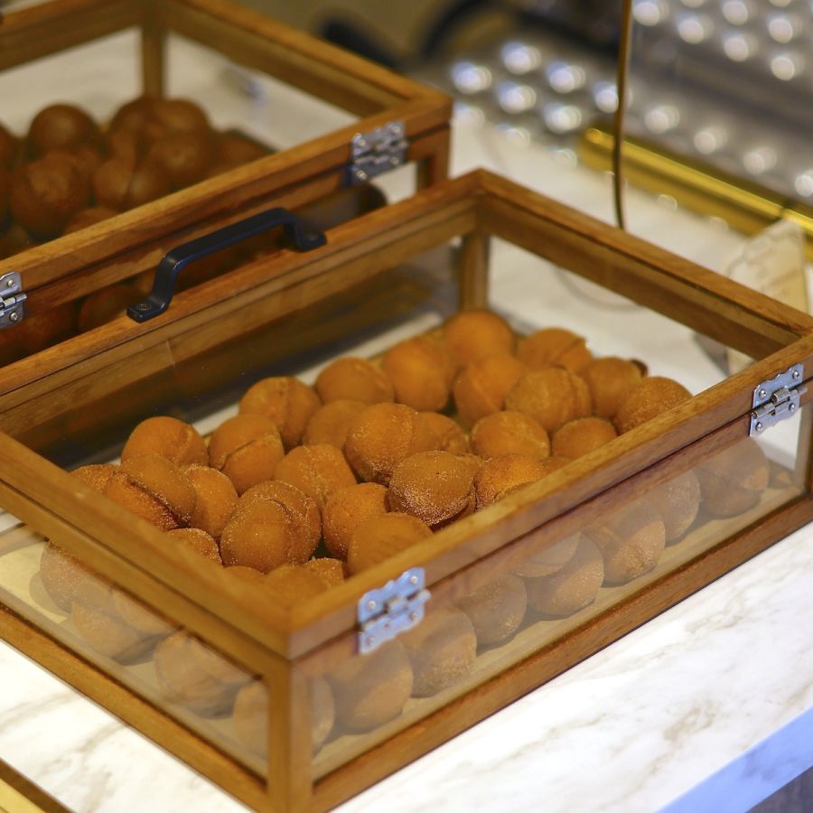 店名の由来は、フランス語で"丸い"を意味する「ロン(Rond)」と"砂糖"を意味する「シュクレ(sucré)」を合わせた造語なのだけど、それは看板メニューである焼菓子「ロンシュクレ」のことを指しています。一見するとベビーカステラのようなルックスをしているこのロンシュクレだけど、ベースはスポンジケーキに近くって、