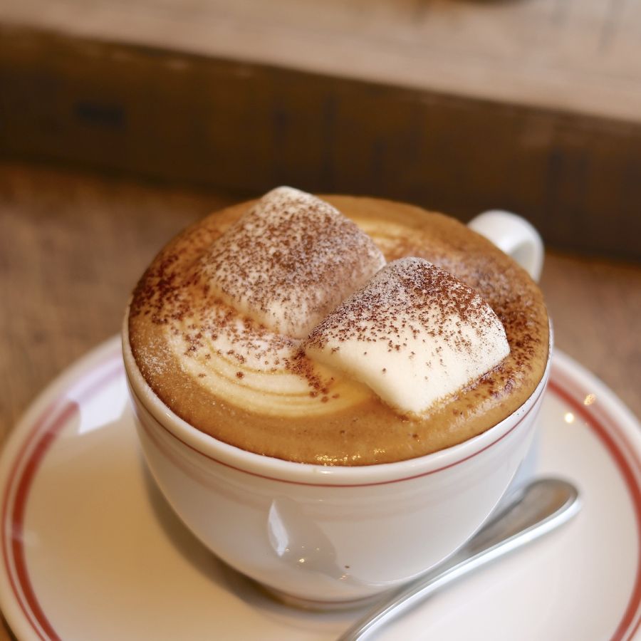 温かいカプチーノをベースにマシュマロを浮かべたこの一杯、ほんのり甘くて、口にするたび身体がぽかぽかして、ホッとするんですよね。癒やされますよ〜、心から。
