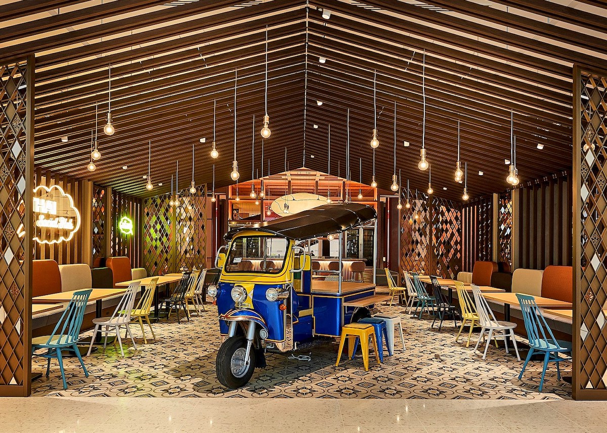 活気あるタイの屋台マーケットがコンセプトのオールデイダイニング、タイ料理レストラン「スアンブア」。入口にはタイを象徴するトゥクトゥクが飾られています。色鮮やかなインテリアやスパイスの香りが漂う店内に入ると、タイを旅行しているかのような気分に。