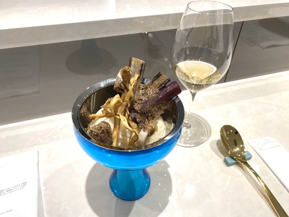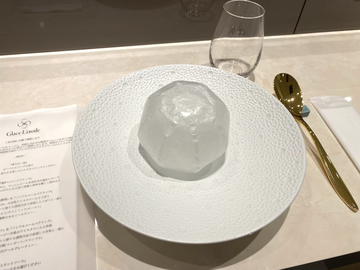 2023年12月、東麻布にオープンした「Glace L’etoile(ぐらすれとわーる)」。フランス語で“アイス”という意味の「Glace」のとおり、アイスクリームを扱う専門店で、コース仕立てでじっくりとアイスを堪能できるお店です。香りやスープなどでアイスを迎える準備を整えたあと、季節の野菜とフルーツをあわせたアイスをたっぷりと味わえます。ほかでは味わえない非日常の食体験ができますよ。
