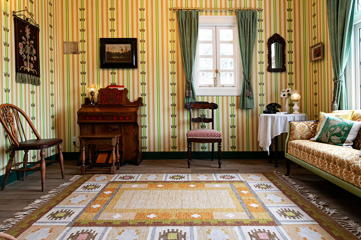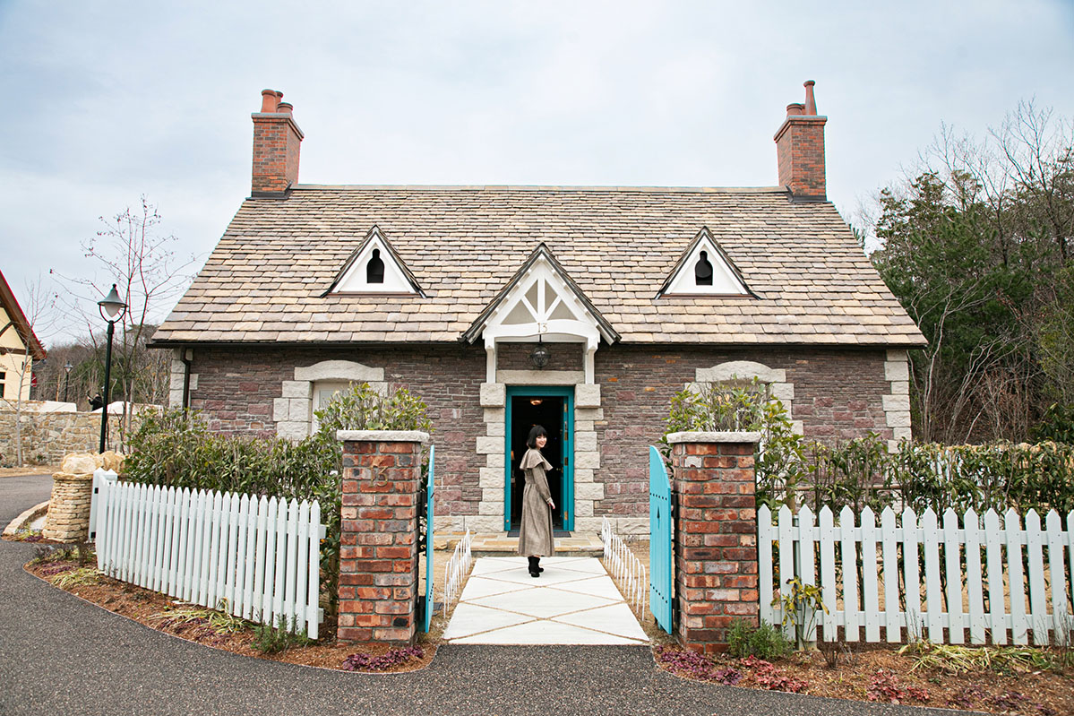 続いてはオキノ邸のご紹介。『魔女の宅急便』の主人公キキの実家で、魔女の修行に旅立つ前まで過ごした2階建ての家です。家の前にある庭園では四季にちなんだ花や草が植えられており、家の隣には車庫があります。