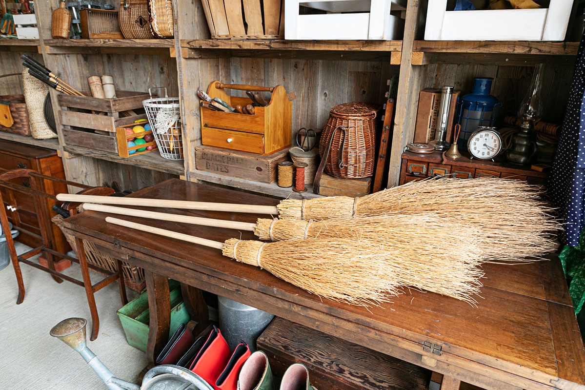 また、家の隣にある車庫でさまざまなサイズのほうきを発見!