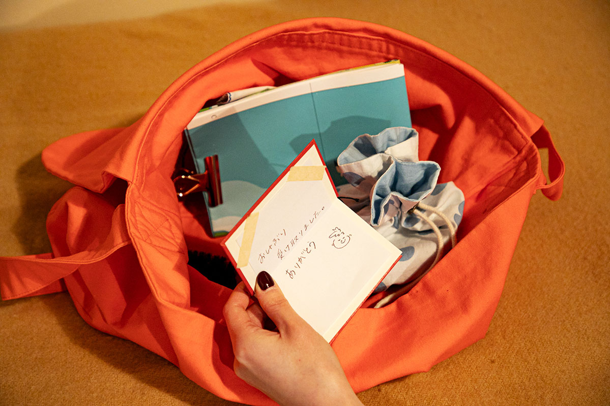 ベッドの上のカバンの中は触ってOKなので、見てみてくださいね。