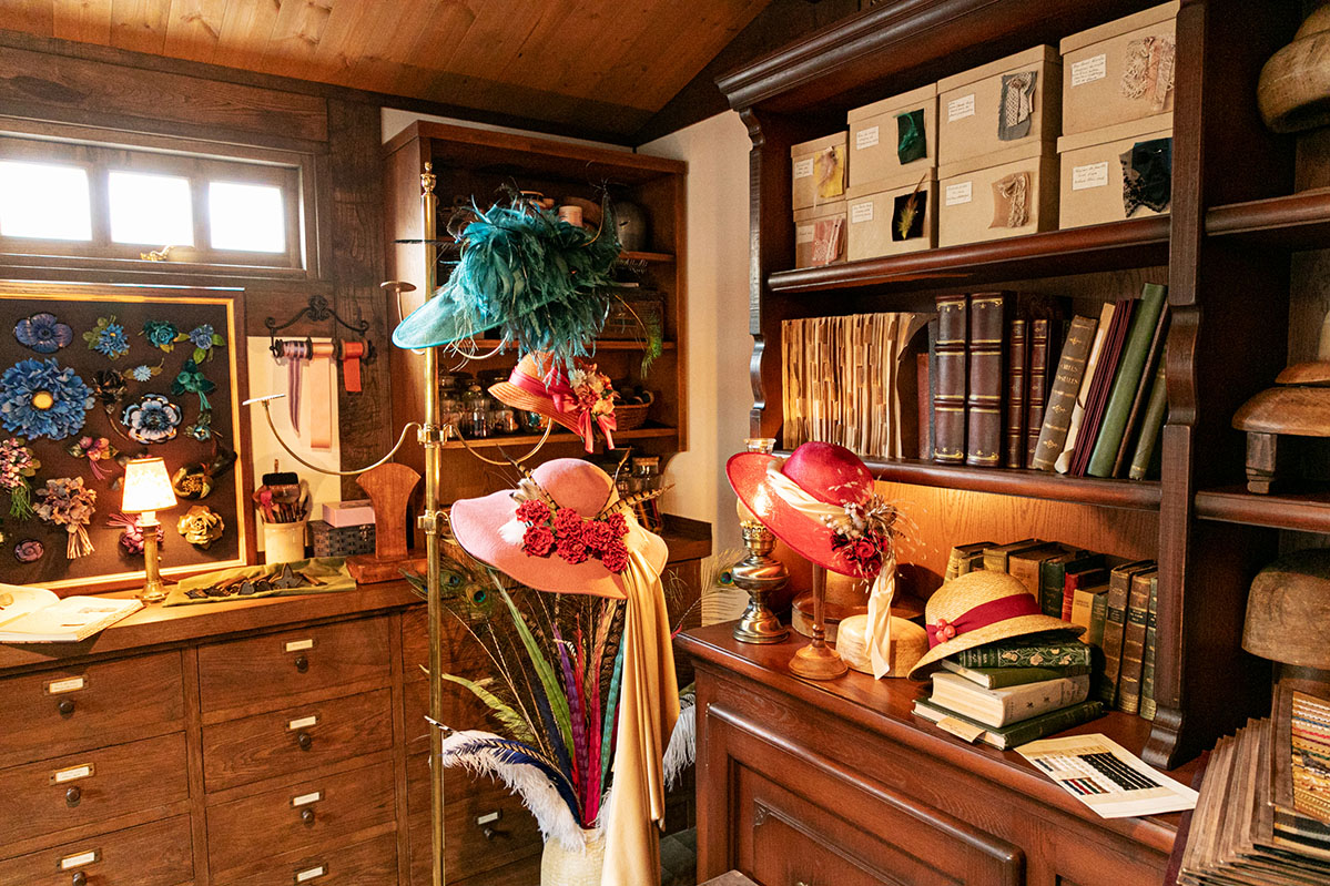 中庭から建物の奥に進むと、ソフィーが帽子を製作する作業場をのぞくことができます。