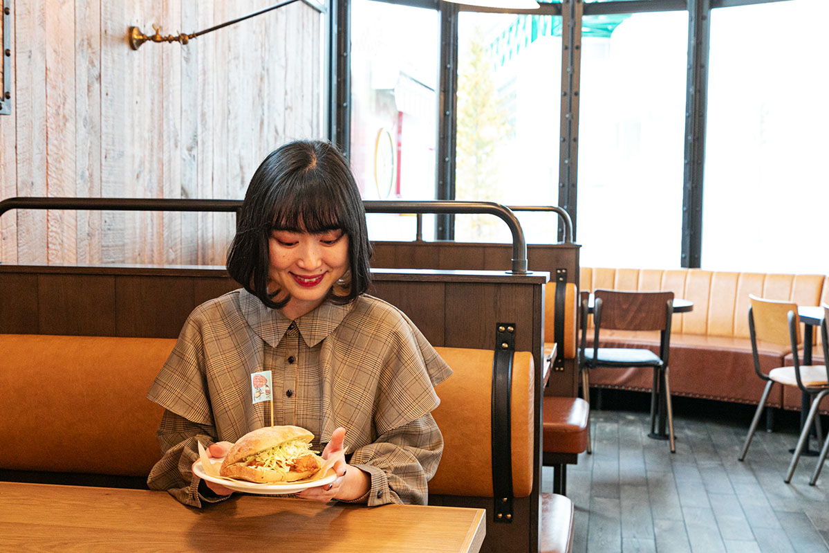 今回「油淋鶏サンド」と「しかくいピザ オイルサーディン」を食べてみたら、どちらもボリューム満点。宮﨑駿監督が描いたオリジナルイラスト入りの旗がかわいいので旗もチェックしてみて。