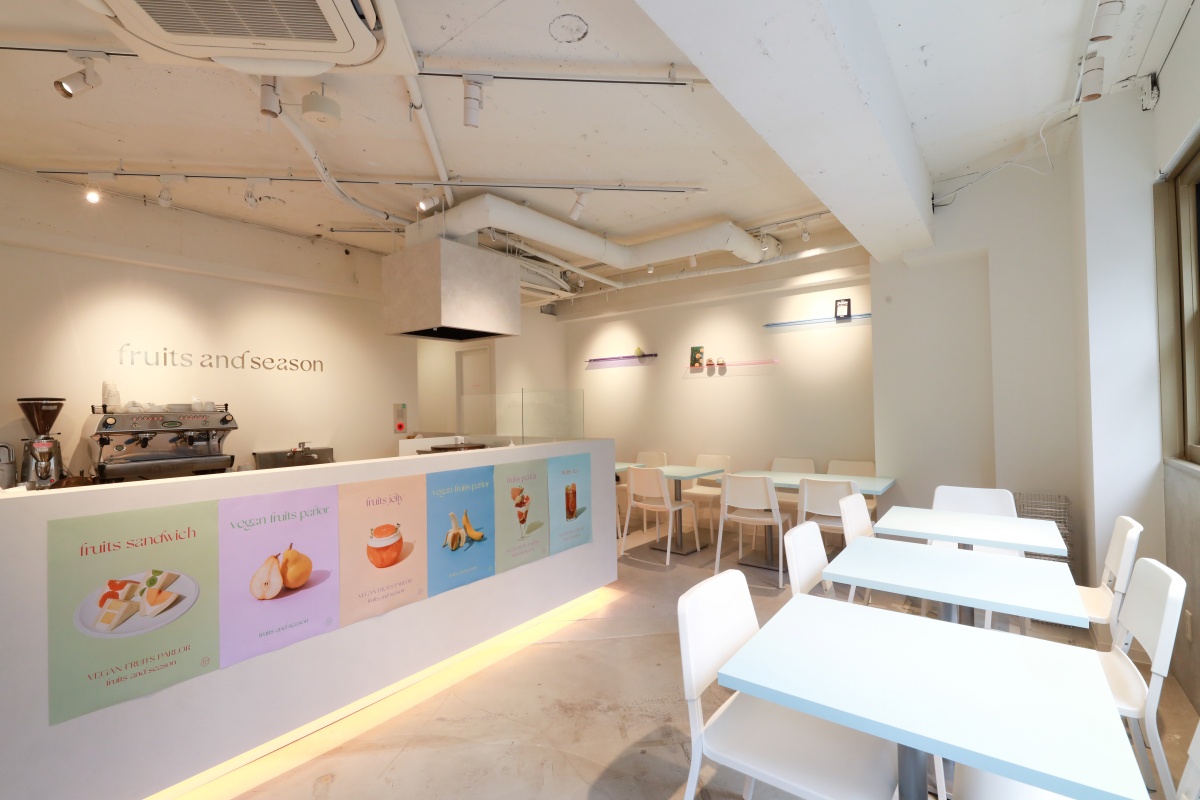 2021年に日本初のヴィーガン対応フルーツサンド専門店としてオープンした恵比寿の「fruits and season(ふるーつ あんど しーずん)」が、2023年10月にリニューアルオープン。イートインスペースが併設され、“ヴィーガンフルーツパーラー”に生まれ変わりました。店内ではおなじみのフルーツサンドはもちろん、パフェやゼリーなど季節のフルーツを使ったメニューが味わえます。