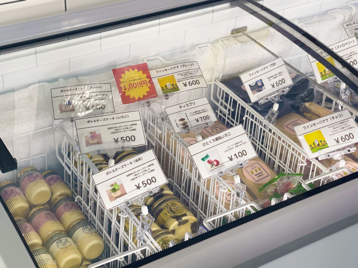 冷凍庫の中にはスイーツや肉グルメ35種類以上がずらっと並んでいて、選ぶ段階からワクワク。商品は常に最先端トレンド商品を販売すべく不定期で入れ替わるので、公式SNSで確認してから訪れるのがおすすめです。