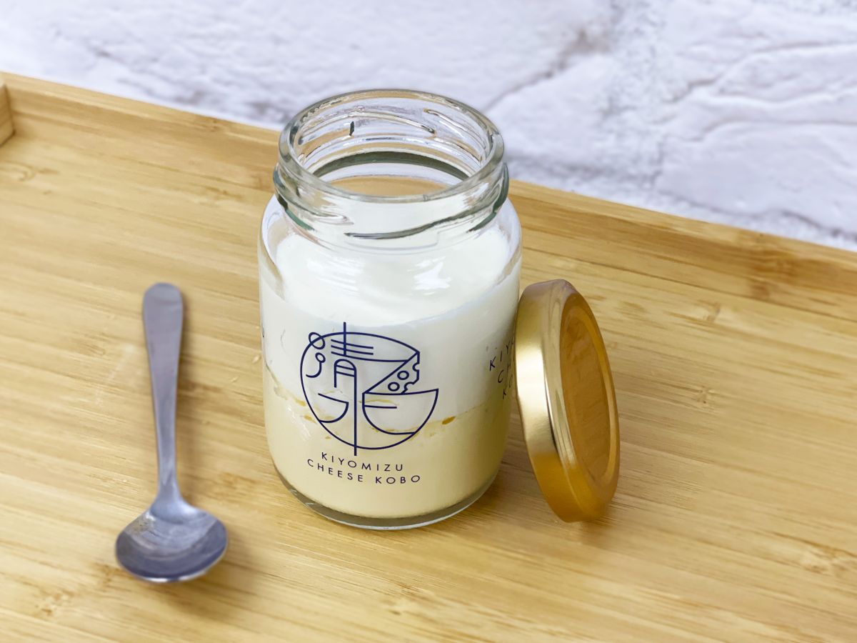 1つ目は、京都のお取り寄せスイーツ専門店「清水チーズ工房」の「ボトルチーズケーキ」。かわいいパッケージで、3種類のチーズケーキの層で構成された本格的なスイーツです。