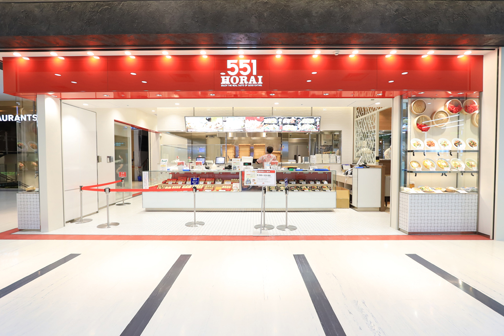 南ターミナル2階(セキュリティチェック前)には、豚まんで有名な「551蓬莱」もあります。1日約17万個売り上げる名物豚まんの販売はもちろん、イートイン利用も可能です。
