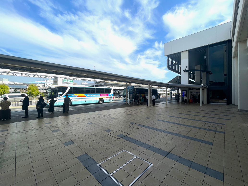 各社バスの乗車スペースは中央ブロック前を中心に、降車は北・南ターミナルそれぞれの1階外に面しています。