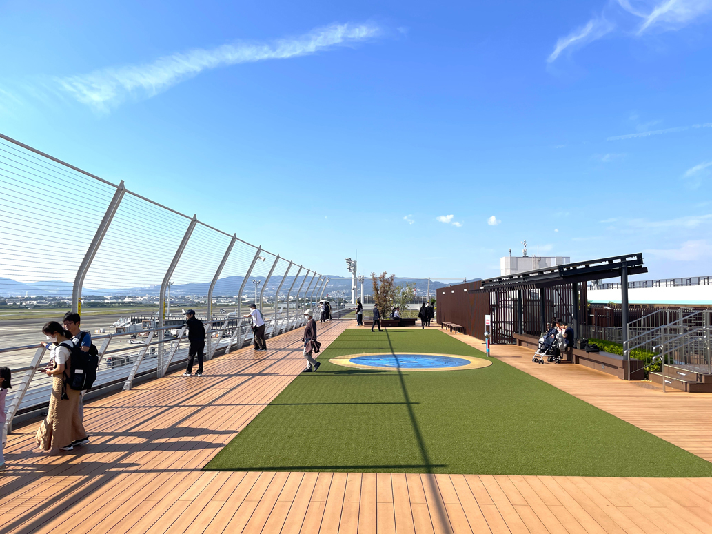 4階には空港滑走路を一望できる展望デッキがあります。家族やカップル、飛行機の写真を撮影する人などで賑わう人気スポットです。長さは約400m、広さは7700㎡と広大!飛行機に乗らなくても無料で入場できる人気のスポットです。
