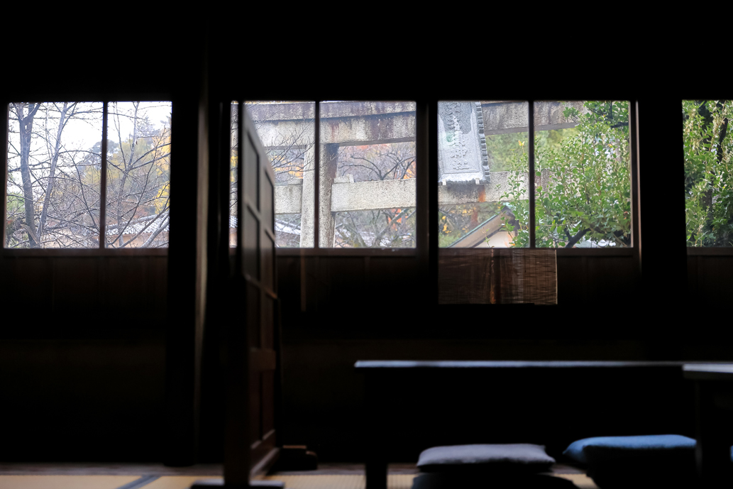 2階は純和風の座敷席で、窓からは宇多須神社の鳥居や境内を見渡すことができます。