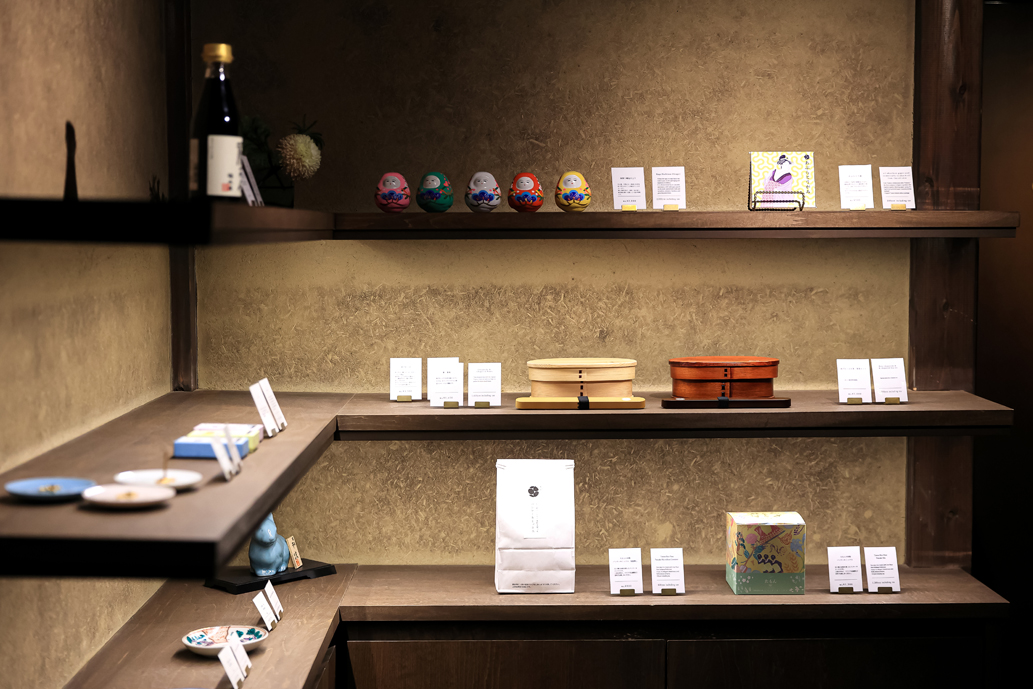カフェやランチを楽しんだら、店頭のおみやげコーナーもチェック。たもんのパンケーキミックスやオリジナルのお香やあぶらとり紙なども販売しています。