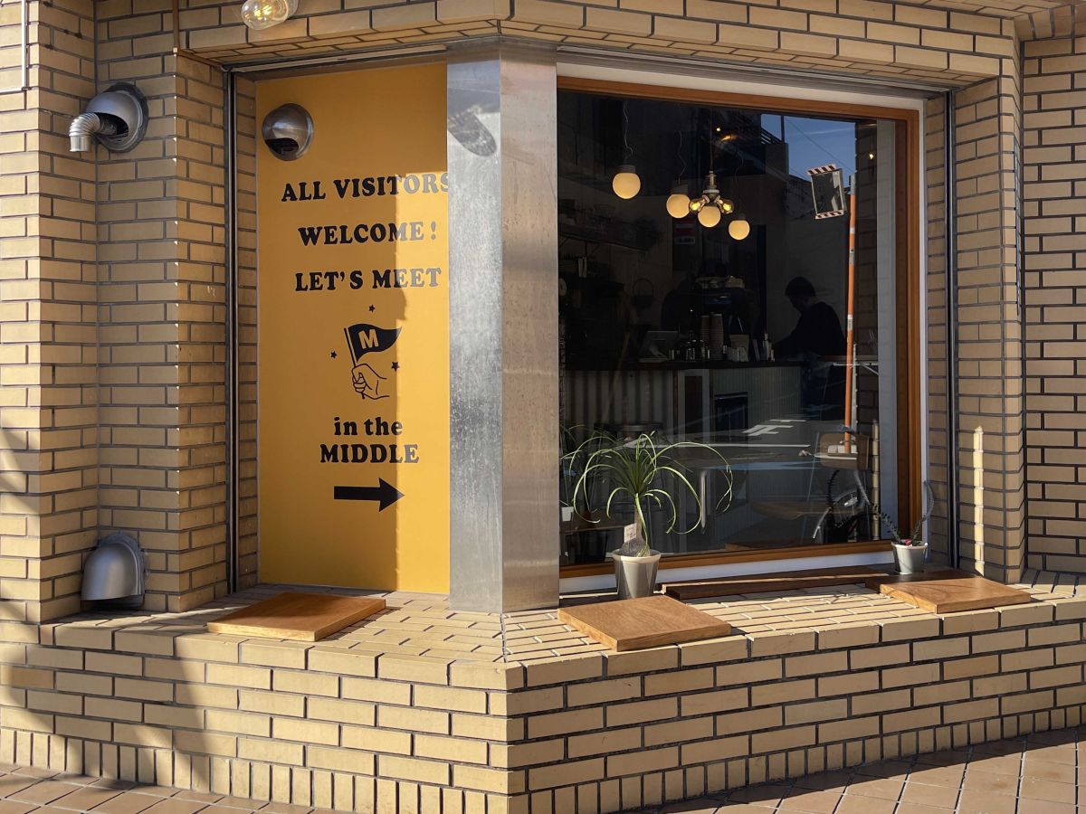 「人種や性別、すべて関係なく人々が集まる中心地のようなカフェにしたい」という思いから、「in the MIDDLE」という名前にしたのだとか。外壁には、その思いを表した英文が書かれています。