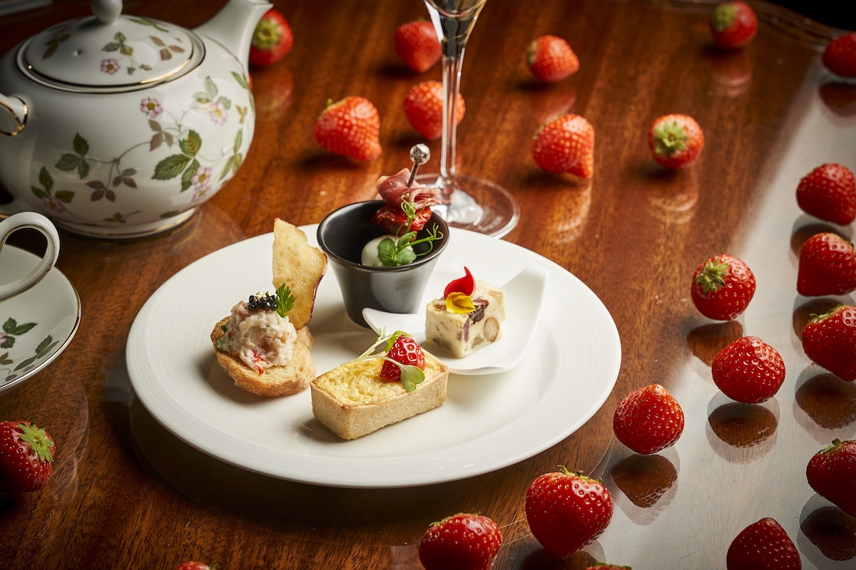 蟹やキャビア、生ハムをはじめ、素材そのものを楽しめるセイボリーは、4種類。ストロベリーを取り入れた一品も登場します。