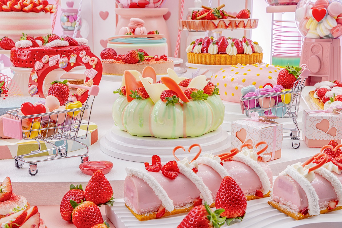 「ヒルトン東京」エグゼクティブペストリーシェフ、播田 修氏が贈る新作ストロベリースイーツは、フレッシュなイチゴをふんだんに使用しながらレモンやミント、バラの香りなどをさりげなくアクセントに加えた上品な味わいが特徴。たくさんのハートに囲まれながら、「ストロベリータルト」や「ストロベリーレアチーズケーキ」など20種類以上の新作イチゴスイーツとフレッシュイチゴを好きなだけ楽しむことができます。