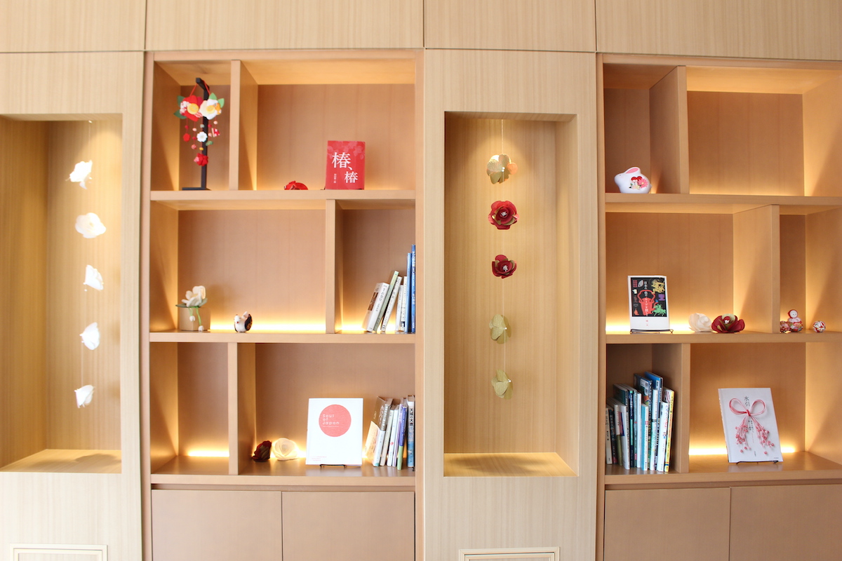 トラベルライブラリーの棚には、伊豆や伊東に縁のある本や、日本の文化・四季について学べるもの、絵本などがラインアップされています。気になった本は部屋に持ち込むこともできますよ。