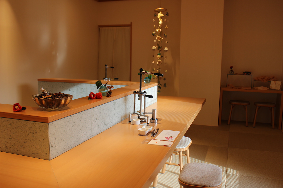 ショップは、「界」オリジナルのお菓子や伊東ならではの椿を使った化粧品、特別和室で見たつるし飾りをはじめとした地元の作家さんの作品も揃います。