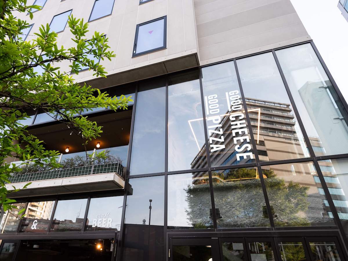 「GOOD CHEESE GOOD PIZZA 渋谷」までは、渋谷駅B1出口から歩いて1分ほど。明治通りから青山通りへ向かう坂の途中に立つホテル「all day place shibuya」の2階にあります。