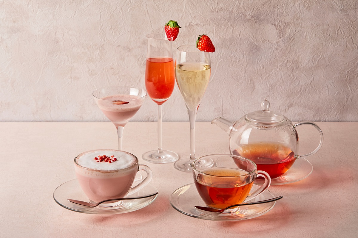 色鮮やかなウェルカムドリンクは、イチゴソースをトニックで割ったすっきりとした味わいで、「ストロベリーコレクション」のスタートを華やかに彩ります。 イチゴとバナナ、ミルクを掛け合わせたフローズンドリンク「いちごスムージー」は、フルーツの甘みを引き立てたすっきりとした味わいです。スイーツに合わせてかわいらしいピンク色に仕上げた「いちごラテ」は、甘さをおさえてさっぱりとした風味でスイーツにもセイボリーにも良く合います。